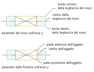 | Utilizzare il centro del muro come punto di riferimento | In Posiziona all'interno di (Y), selezionare Centro della larghezza muro per l'opzione Da. |