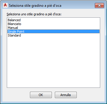 Nota: Solo gli stili di gradini a piè d'oca presenti nel disegno vengono visualizzati.