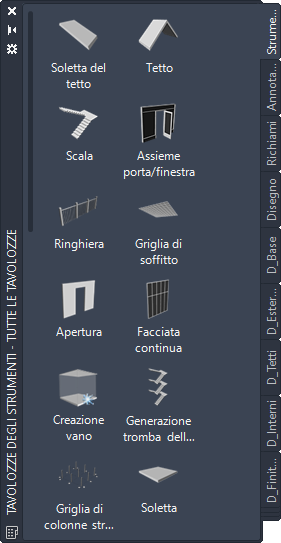 Le tavolozze personalizzate create dall'amministratore CAD o da altri utenti possono inoltre contenere strumenti Zona con stili e proprietà di zona personalizzati per i progetti in corso o gli standard aziendali in uso.
