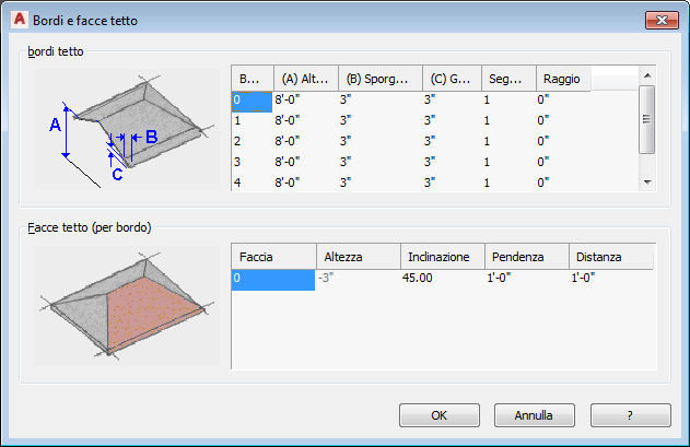 | Modificare l'inclinazione di una faccia di tetto | Per la faccia del tetto selezionare Inclinazione e immettere un valore. |