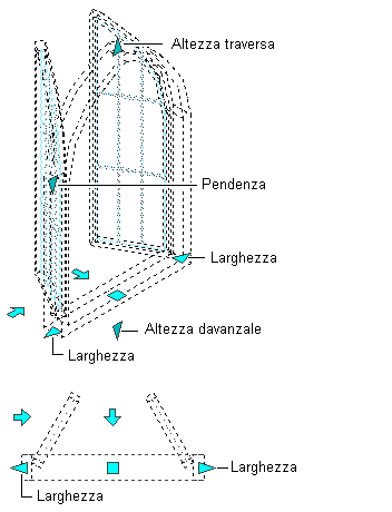 Grip di quota della finestra in vista piana e vista modello