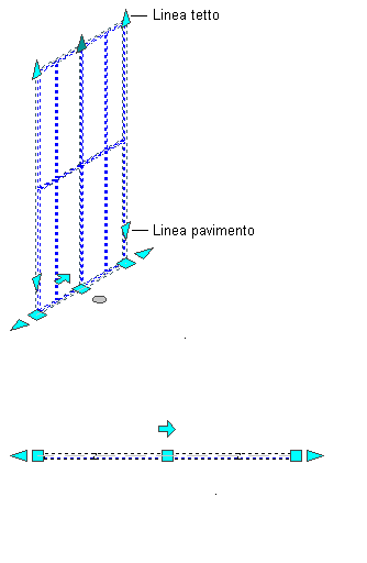A seconda del tipo di oggetto, sono disponibili vari grip. Ad esempio, per un muro o una ringhiera non associata è disponibile un grip di direzione (freccia) che consente di modificare la direzione dell'oggetto. Le ringhiere associate a scale o ad elementi strutturali non sono dotate di grip di direzione.