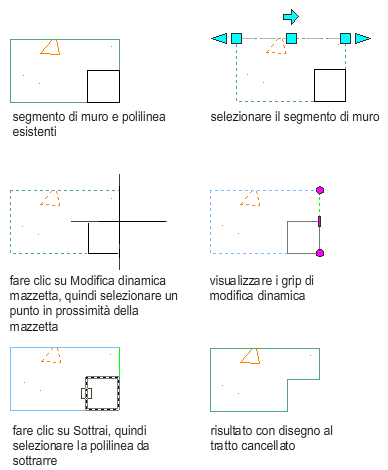 Nell'esempio seguente un profilo viene sottratto da un componente muro.