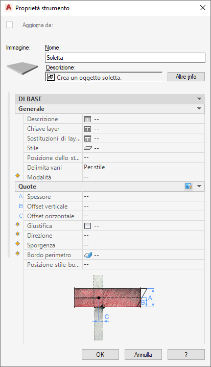 - È possibile impostare un offset verticale per predeterminare l'altezza di una soletta.