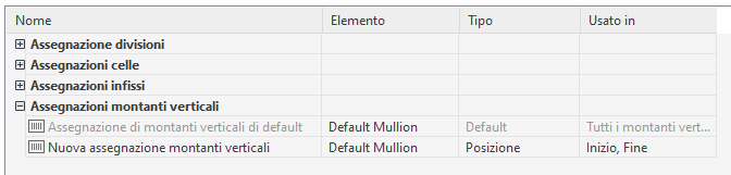 Nell'elenco delle assegnazioni di montanti verticali verrà visualizzata una nuova assegnazione.