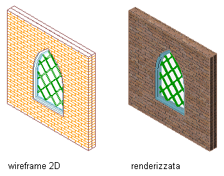 Finestra in viste renderizzate e wireframe 2D