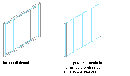 Se si specifica Nessuno come sostituzione, il bordo dell'infisso non viene visualizzato, ma il riempimento adiacente non si espande nello spazio occupato dal bordo.