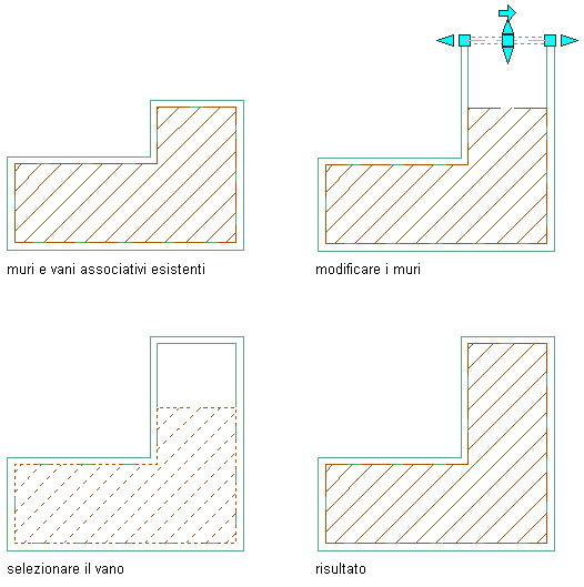 Nota: In precedenza, gli oggetti contenuti in un layer congelato o nascosto non venivano inclusi negli aggiornamenti dei vani. Ora gli oggetti congelati o nascosti sono inclusi nell'aggiornamento dei vani, se la relativa proprietà Delimita vani è impostata su Sì.