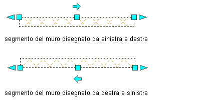 Per aggiungere un muro ad un disegno, si seleziona uno strumento Muro e si specificano i punti che definiscono ciascun segmento del muro. Un muro può essere associato a segmenti diritti e curvi.
