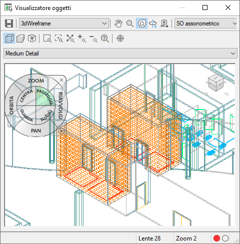 Gli SteeringWheels sono menu dinamici divisi in diverse sezioni. Ogni sezione di un disco rappresenta uno strumento di navigazione. È possibile spostare, eseguire lo zoom e cambiare la vista corrente del modello in diversi modi.