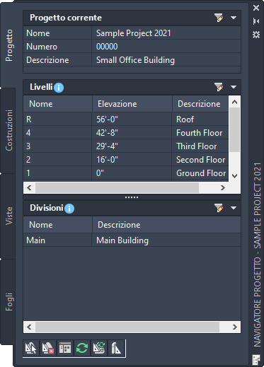 Nella scheda Progetto del Navigatore progetto è possibile immettere informazioni relative all'intero progetto.