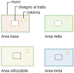 | Aree comuni del piano (FCA) | Servizi, ripostigli, stanze per impianti elettrici, aree per telefoni pubblici, stanze per impianti meccanici, aree per ascensori e corridoi aperti al pubblico |