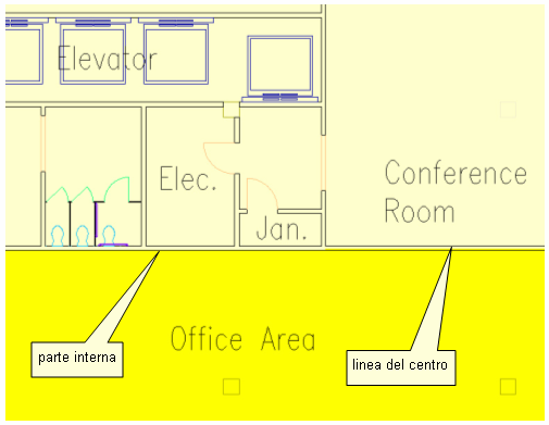 | Aree uffici, aree commerciali, BCA e FCA | Misurato dalla faccia esterna del muro |