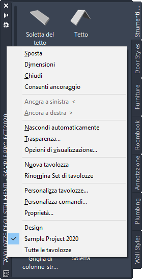 Per visualizzare l'insieme di tavolozze degli strumenti, Scegliere scheda Iniziogruppo Creamenu a discesa StrumentiStrumenti di design.