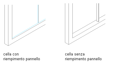 Per rimuovere il riempimento di una cella e lasciarla vuota, attenersi alla procedura indicata di seguito. A questo proposito, utilizzare Nessuno come definizione di elemento. Questa opzione consente anche di rimuovere gli eventuali bordi degli infissi che delimitano la cella, ma non ha alcun effetto sui montanti verticali.