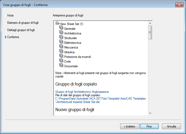 | Terminare la creazione del modello gruppo di fogli | Fare clic su Fine. |
