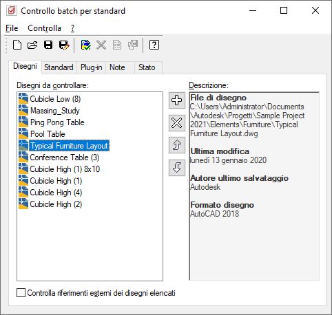 Prima di avviare il Controllo batch, aggiornare il file CHX del progetto per assicurarsi che contenga l'elenco corrente dei file degli standard AutoCAD e dei file di progetto.