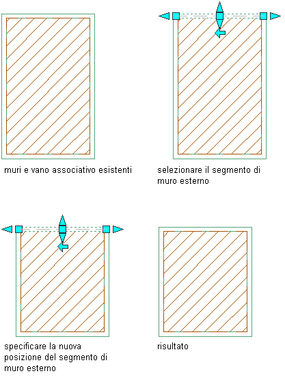 I vani associativi vengono definiti dagli oggetti del contorno e si aggiornano quando tali oggetti cambiano. È possibile scegliere di aggiornare automaticamente i vani associativi, ogni volta che gli oggetti del contorno cambiano o di eseguire l'aggiornamento manualmente.