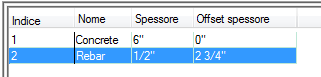 La formula può essere semplice come quella visualizzata (in cui si utilizza soltanto lo Spessore base) o può specificare un valore da aggiungere a Spessore base o ancora un'operazione matematica aggiuntiva che include lo Spessore base. Osservare che il menu a discesa delle operazioni e la casella degli operandi a destra sono disponibili soltanto se è selezionata l'opzione Spessore base. Nel caso dell'armatura da 1/2'' collocata al centro di una soletta di calcestruzzo di spessore variabile, la formula di Offset spessore per l'armatura sarebbe la seguente: