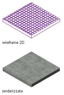 È possibile assegnare materiali ad una soletta o soletta del tetto. Ad una soletta di pavimento, ad esempio, è possibile assegnare un materiale rappresentante piastrelle con bordi in calcestruzzo. Questi materiali sono visualizzati nelle viste wireframe o renderizzate. Le impostazioni dei materiali variano a seconda dei singoli componenti delle solette o solette del tetto, ad esempio il corpo, la gronda e la sottogronda.
