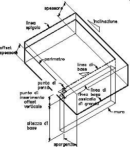 Il corpo di una soletta o soletta del tetto è un'estrusione perpendicolare al piano del perimetro e viene definito dalla geometria seguente: