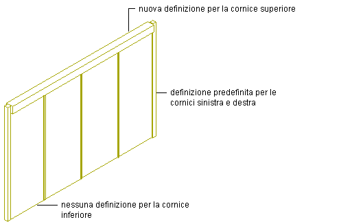 Allo stesso modo, è possibile creare più definizioni di infisso e assegnare poi una definizione diversa a ciascun bordo dell'infisso (superiore, inferiore, sinistro o destro). È comunque possibile creare anche più definizioni di montante verticale.