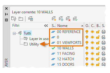 La variabile di sistema SORTORDER controlla l'ordinamento degli elenchi di layer in base ad un criterio naturale o ASCII.
