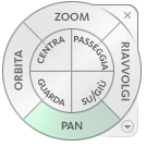 Gli strumenti SteeringWheels sono menu mobili divisi in quattro diverse sezioni, note come sezioni del disco. Ogni sezione rappresenta un singolo strumento di navigazione.