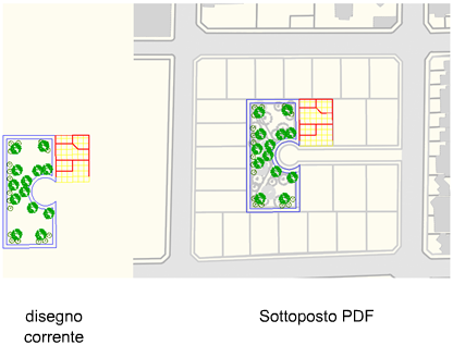 I sottoposti sono simili alle immagini raster collegate in quanto forniscono contenuto visivo ma consentono anche di eseguire operazioni di snap ad oggetto e di ritaglio. A differenza dei riferimenti esterni, non è possibile unire al disegno i sottoposti.