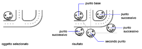 Con COPIA è possibile creare più copie dall'insieme di selezione e dal punto di base specificati. Le opzioni disponibili includono quelle indicate di seguito: