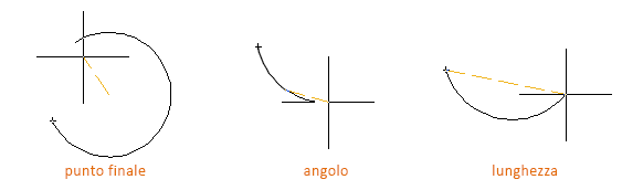 Se si immette un numero positivo, vengono creati segmenti di arco in senso antiorario. Se invece si digita un numero negativo, vengono creati segmenti di arco in senso orario.