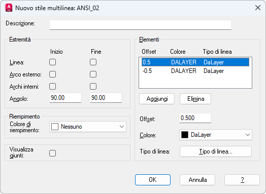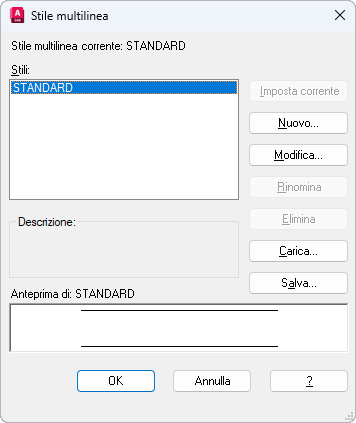 Se si desidera creare più stili di multilinea, salvare lo stile corrente prima di crearne uno nuovo per evitare di perdere le modifiche apportate al primo.