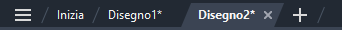 Le schede di file forniscono un metodo semplice per accedere a tutti i disegni aperti nell'applicazione. In una scheda di file viene in genere visualizzato il nome completo del file. Fare clic sul segno più (+) all'estremità destra della barra delle schede di file per aprire un nuovo disegno basato sul file modello specificato utilizzato dal comando CNUOVO.