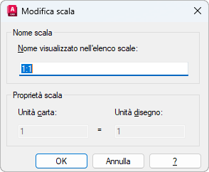 Digitare un nome numerico o descrittivo. Ad esempio, in un disegno architettonico in cui viene utilizzata una scala anglosassone, è possibile digitare 1"=4' o 1:48.