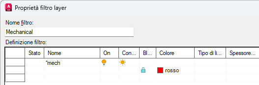 Immettere un nome di layer oppure un nome di layer parziale con caratteri jolly standard. Ad esempio, digitando *mecc* è possibile includere tutti i layer il cui nome comprende le lettere mecc.