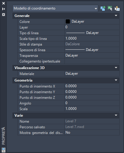 Per visualizzare la tavolozza Proprietà, fare doppio clic sul modello di coordinamento o sulla casella di delimitazione attorno al modello.