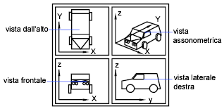 L'orientamento della vista ortogonale specificata si basa sulla variabile di sistema UCSBASE, che per default è impostata sul sistema di coordinate globali. Quando si ripristina una delle viste ortogonali, viene eseguito lo zoom delle estensioni della finestra corrente.