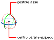 È possibile ruotare liberamente gli oggetti trascinandoli all'esterno del gizmo. È possibile anche specificare l'asse attorno al quale si desidera vincolare la rotazione.