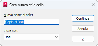 Specifica un nome da assegnare al nuovo stile di cella e lo stile di cella esistente sul quale dovrà basarsi.