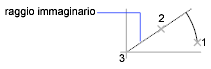 Disegna un arco in senso antiorario partendo dal punto iniziale (1) fino ad un punto finale che cade sul raggio immaginario tracciato dal punto centrale (3) fino al secondo punto specificato (2).