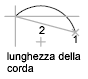 Se la lunghezza della corda ha valore positivo, l'arco minore viene disegnato in senso antiorario a partire dal punto iniziale. Se la lunghezza della corda è negativa, l'arco maggiore viene disegnato in senso antiorario.