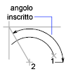 Disegna un arco in senso antiorario, partendo dal punto iniziale (1) e utilizzando un centro (2) con un angolo iscritto specificato. Se l'angolo è negativo, l'arco viene disegnato in senso orario.