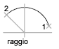 Disegna un arco minore in senso antiorario a partire dal punto iniziale (1) fino al punto finale (2). Se il raggio è negativo, viene disegnato l'arco maggiore.