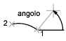 Disegna un arco in senso antiorario a partire dal punto iniziale (1) fino al punto finale (2), con un angolo inscritto specificato. Se l'angolo è negativo, l'arco viene disegnato in senso orario.