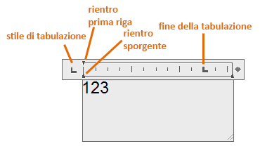 • Sposta. Trascinare una tabulazione esistente in una nuova posizione sul righello.