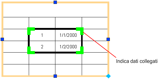 In una tabella che contiene collegamenti dati sono visualizzati degli indicatori attorno alle celle collegate. Per visualizzare informazioni sul collegamento dati, posizionare il cursore su di esso.