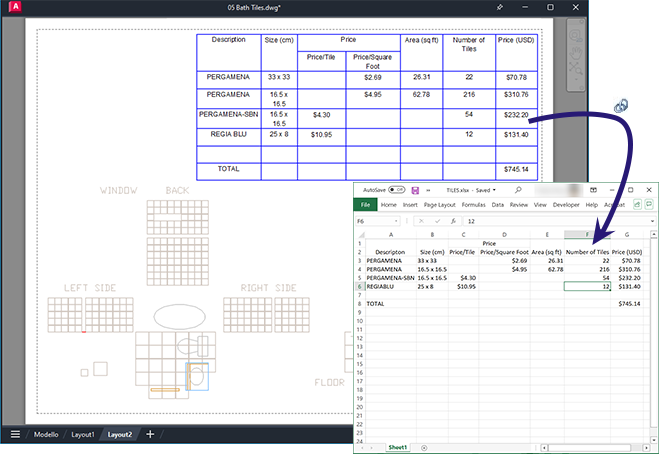 Se un foglio di calcolo collegato è stato modificato, ad esempio con l'aggiunta di una riga o di una colonna, la tabella presente nel disegno potrà essere aggiornata di conseguenza utilizzando il comando AGGIORNCOLLDATI. Analogamente, se viene apportata una modifica ad una tabella nel disegno, è possibile aggiornare il foglio di calcolo collegato utilizzando lo stesso comando.