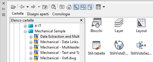 DesignCenter fornisce un modo per individuare rapidamente il contenuto, ad esempio file di disegno, definizioni di blocco e tratteggi.
