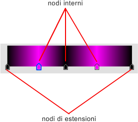 Fare clic in un punto qualsiasi della sfumatura campione per aggiungere dei nodi. Trascinare il nodo al di fuori dell'area di contorno del campione per eliminarlo.