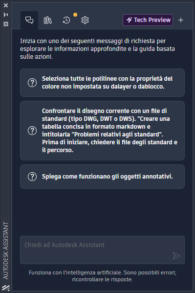 Visualizza la tavolozza Autodesk Assistant, che fornisce una guida basata sull'IA.